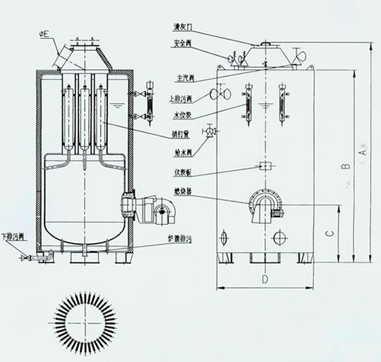 針型管即是在鍋爐的水管外側,焊有許多針狀銷釘,擴大了水管外側(即煙氣側)的受熱面積,提高了傳熱系數。因此,LSK型針型管鍋爐具有體積小,重量輕,熱效率高(>83%),升汽速度快(一般為15-18分鐘),便于維護等特點,特別是針型管結構使得清理煙灰更加方便,并且不污染機倉環(huán)境。
